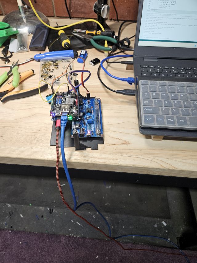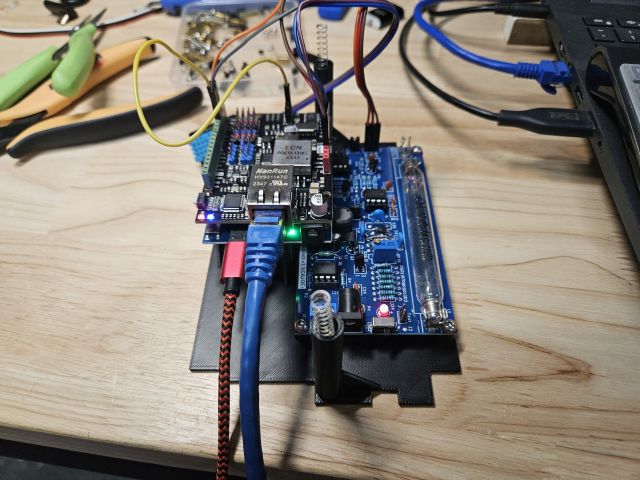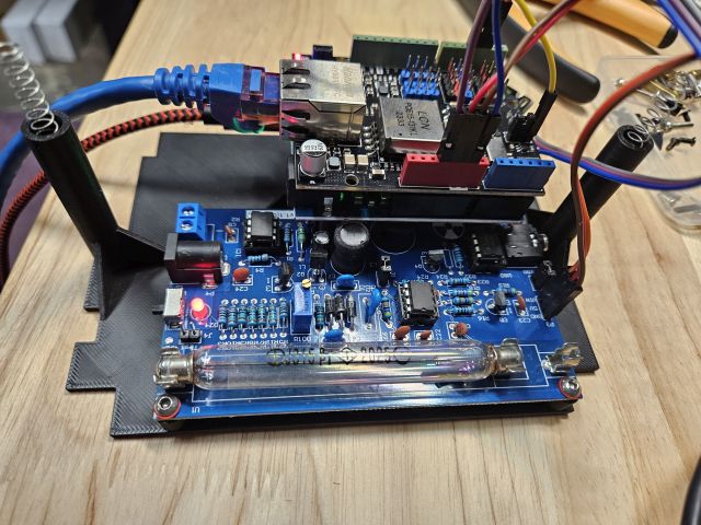 I've refactored some Arduino code that was written a few years back and turned it into something that I call Parrot. The original code and container was found at Thingverse. I'm using the original container plans, have 3D-printed them, and have used most of the same parts the OD used, but have added a few extra bits and rewritten most of the code. The images below are of the DIY Geiger kit from Aliexpress, with the J315 (Hey, I know, I can't find a listing for that tube either, but that's what's printed on it) tube, the Leonardo board, and the DFRobot POE Hat. Last Pic is the pole she'll be attached to.
