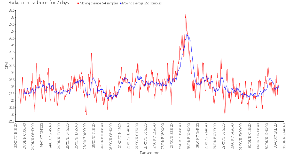 Im not sure if this is relevant, very possibly not, but I figure worth posting in case anyone else has seen similar results.On 28th Jan my geiger counter recorded elevated levels during rain. This is the first time since I have been monitoring radiation levels that I have noticed a noteworthy elevation in levels, albeit very small. The raise in radiation levels was during a rain period, and the levels returned to normal background levels after the rain had stopped. Below are graphs from my radmon data and my weather station. Although the graphs look very different, they are from the exact same time period.