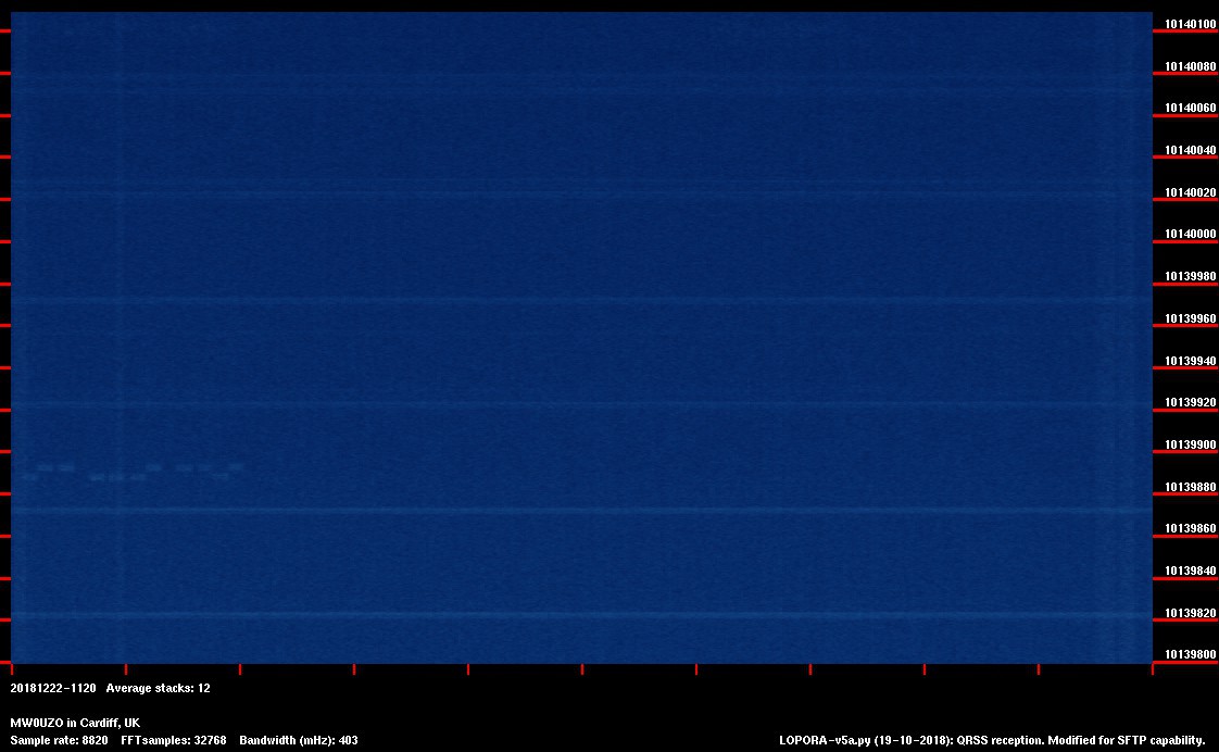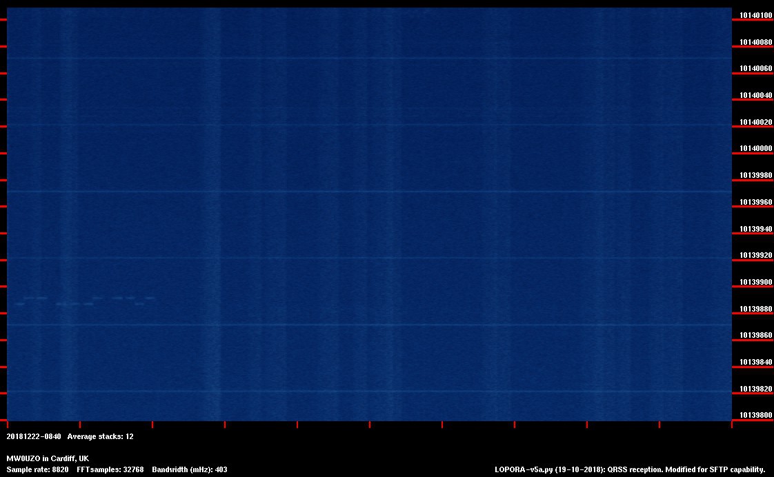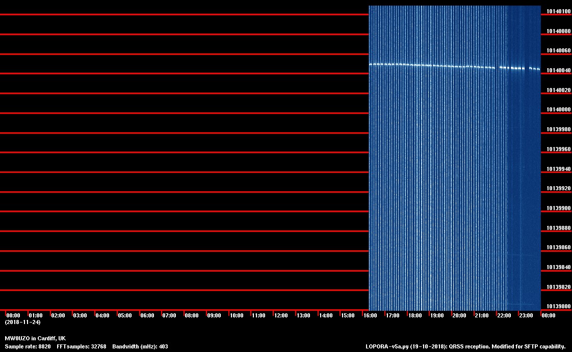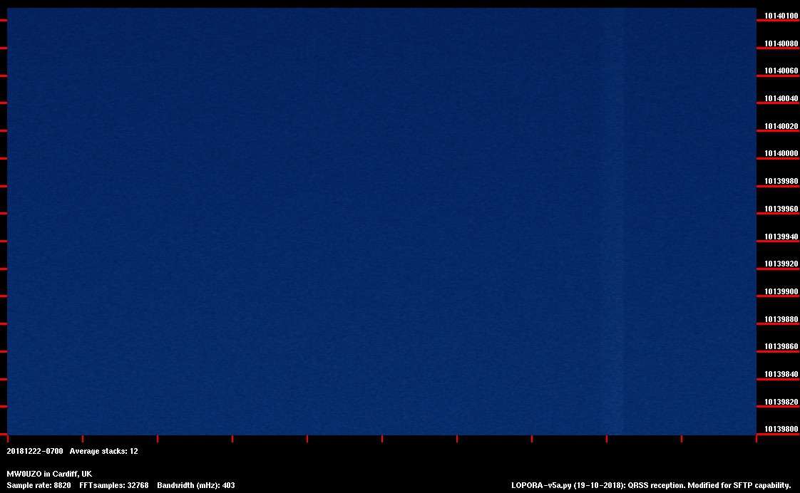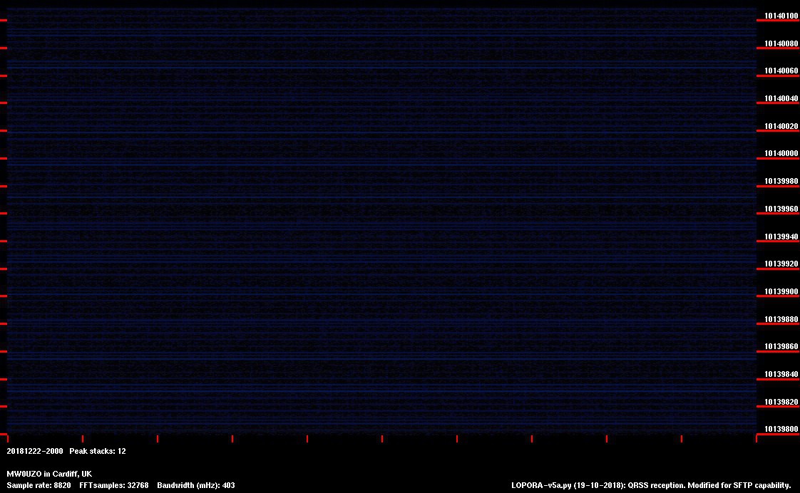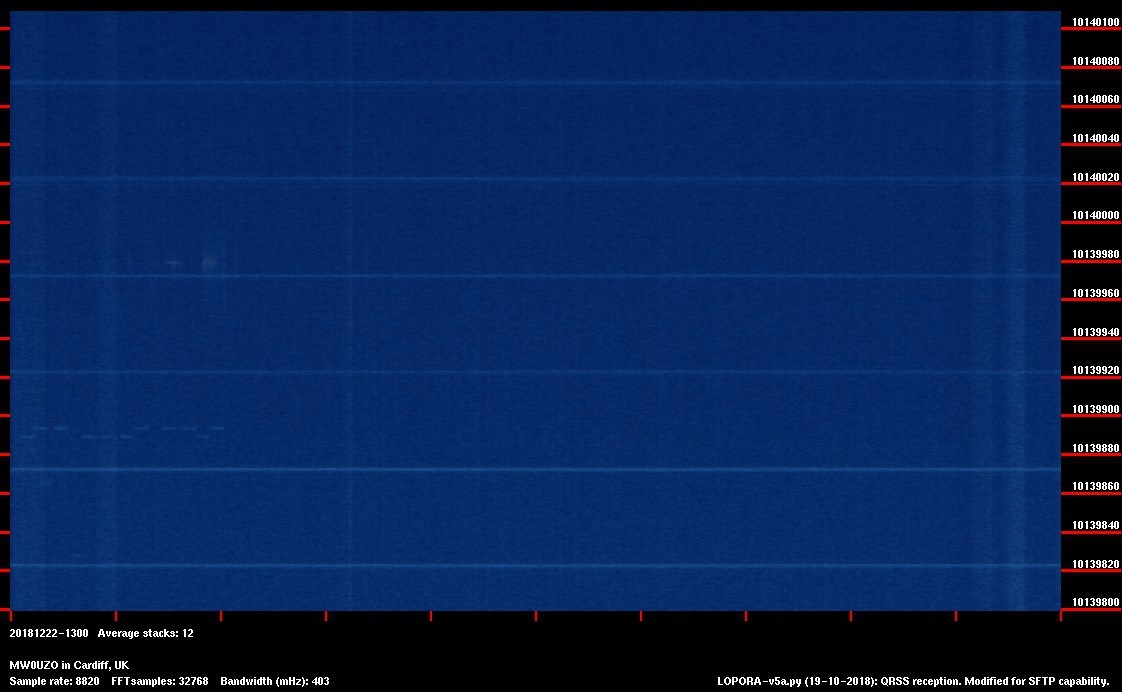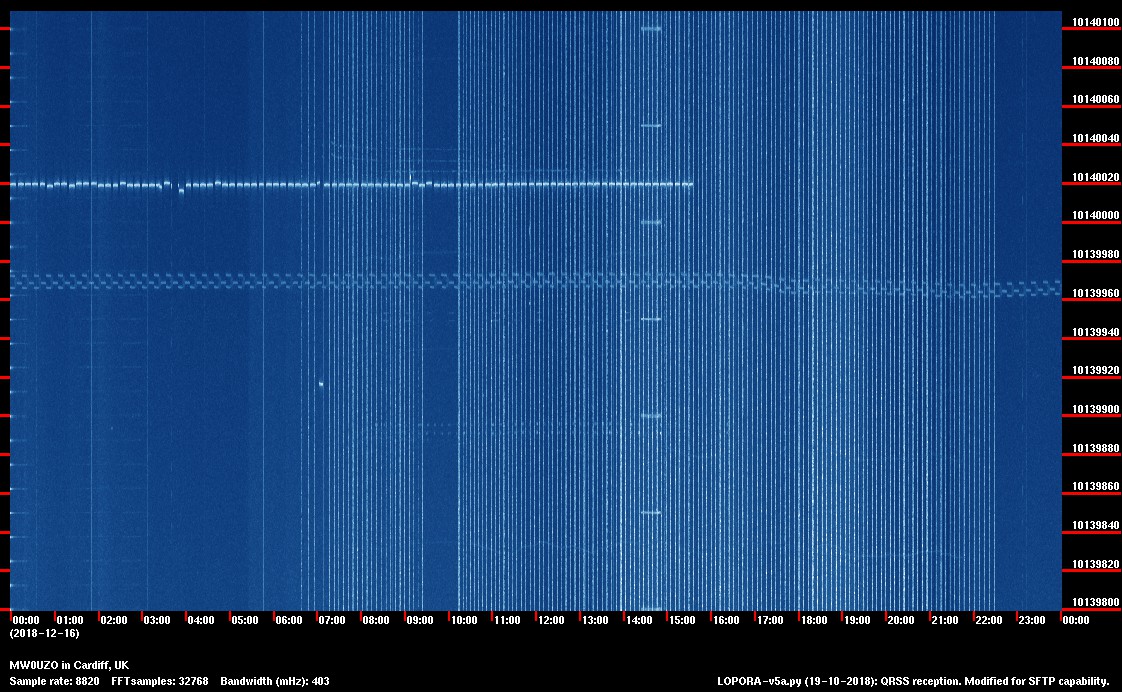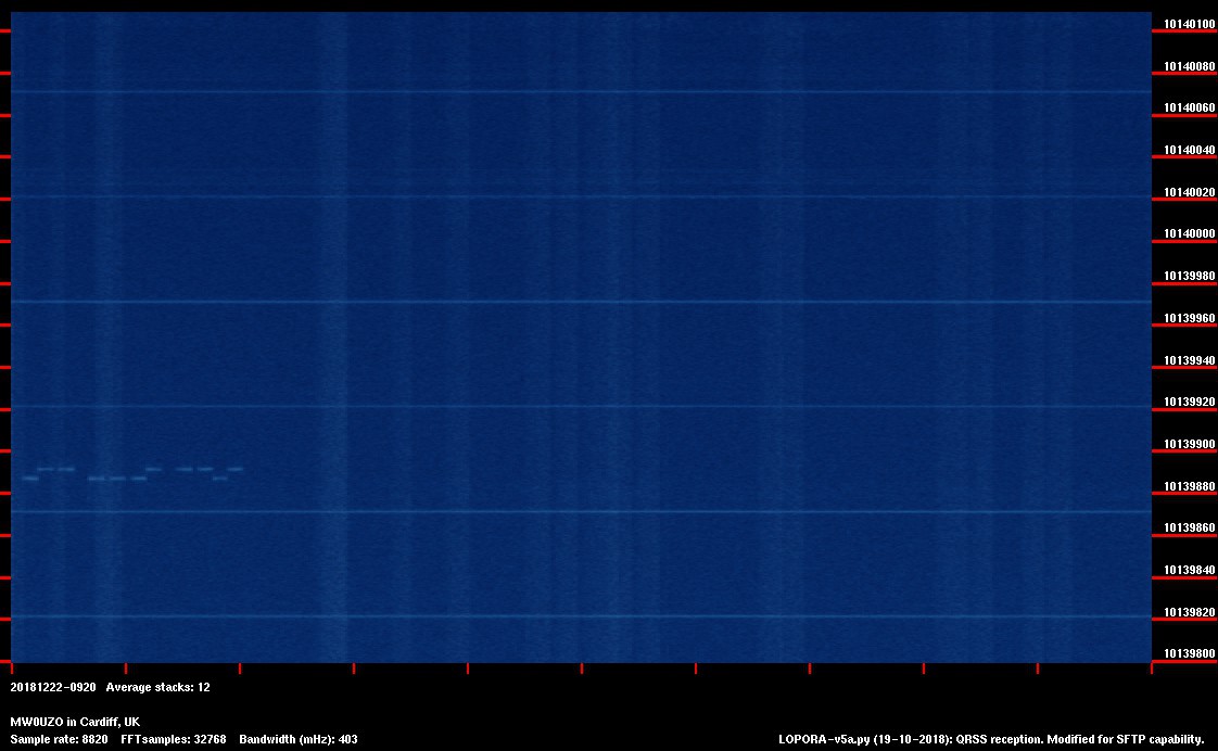 The grabber is made from a simple SDR kit, the Soft66Lite, a Behringer UCA202 USB sound card. The SDR receiver is SDR# and the FFT processing and display software is PA2OHH's excellent analysis program LOPORA. The SDR radio has a crystal frequency of 20.250Mhz with a piece of copper soldered to it, inside a homebrew crystal oven.