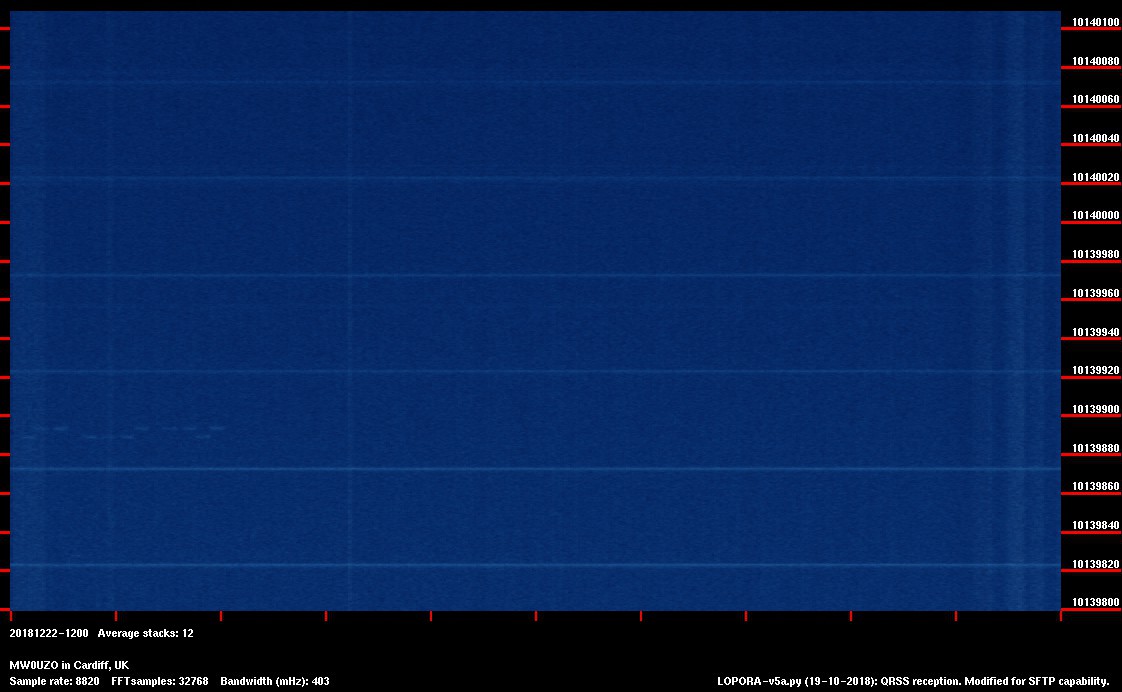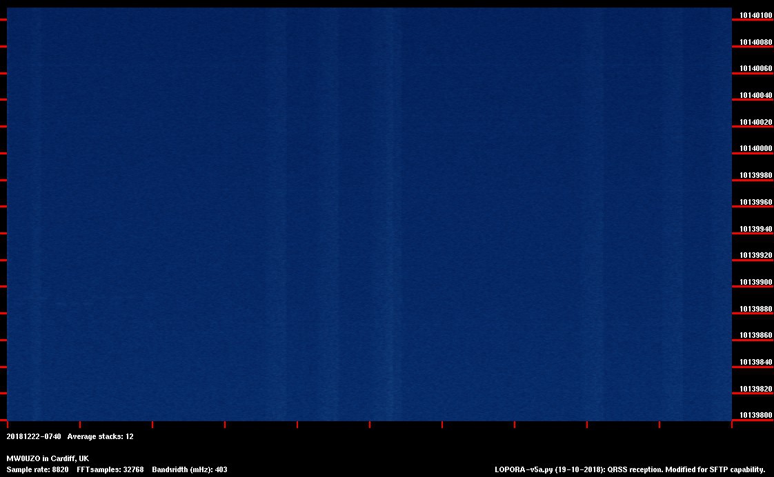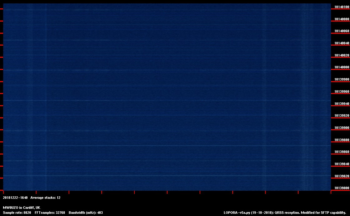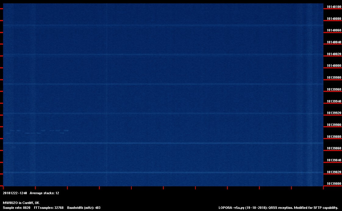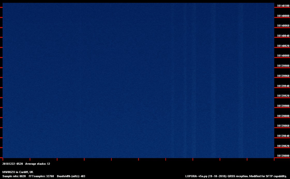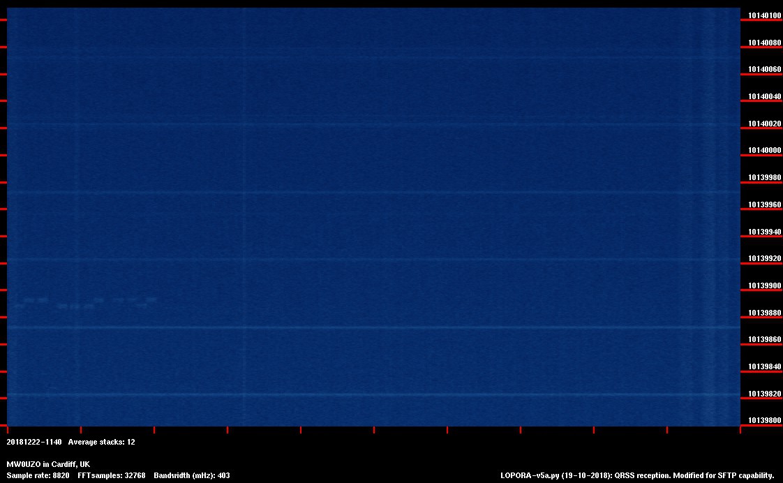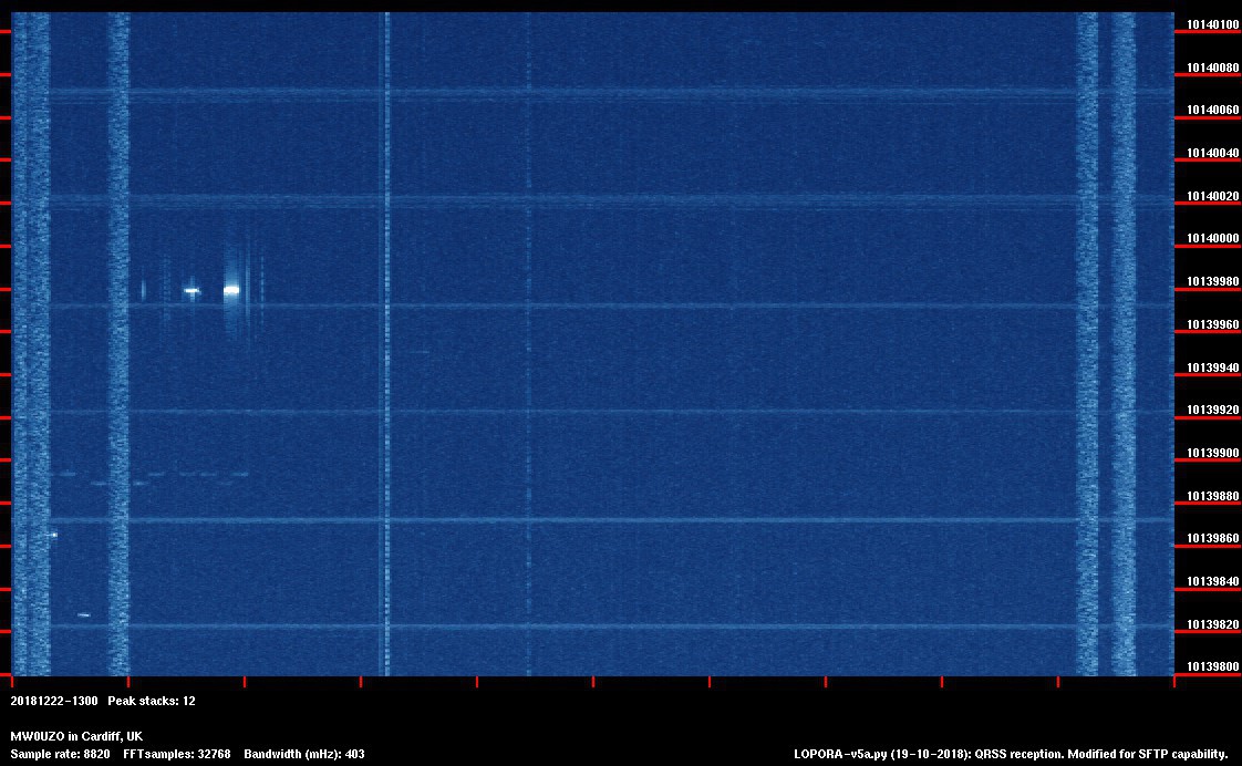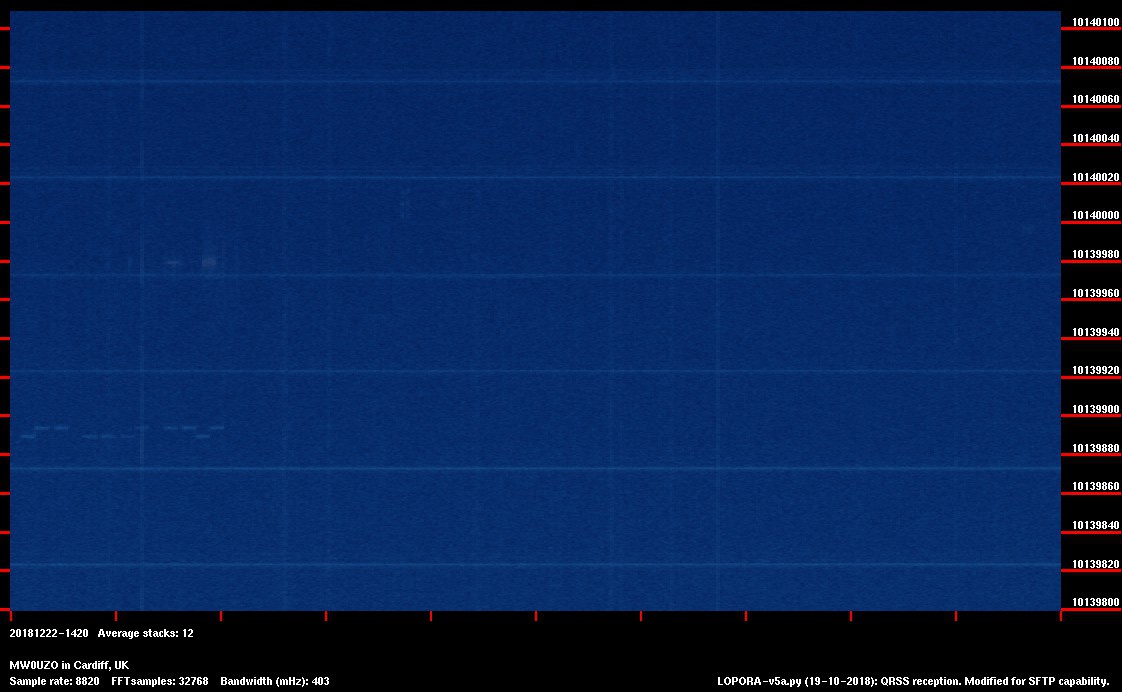 The grabber is made from a simple SDR kit, the Soft66Lite, a Behringer UCA202 USB sound card. The SDR receiver is SDR# and the FFT processing and display software is PA2OHH's excellent analysis program LOPORA. The SDR radio has a crystal frequency of 20.250Mhz with a piece of copper soldered to it, inside a homebrew crystal oven.