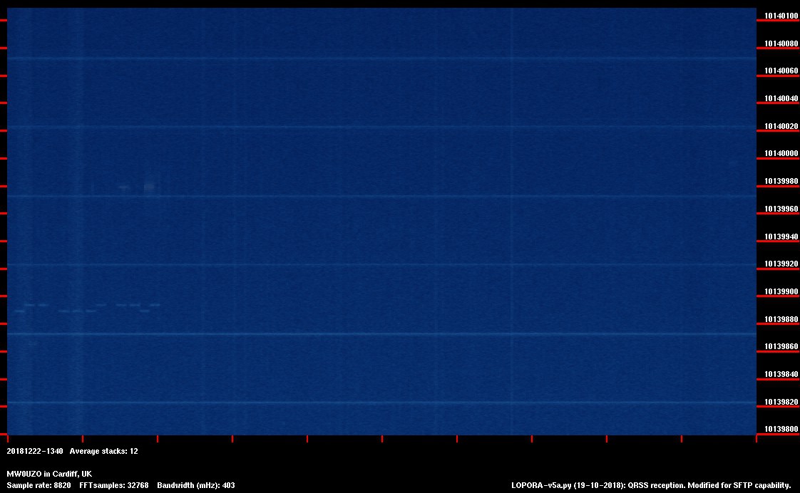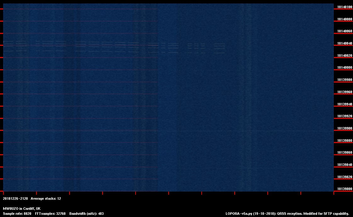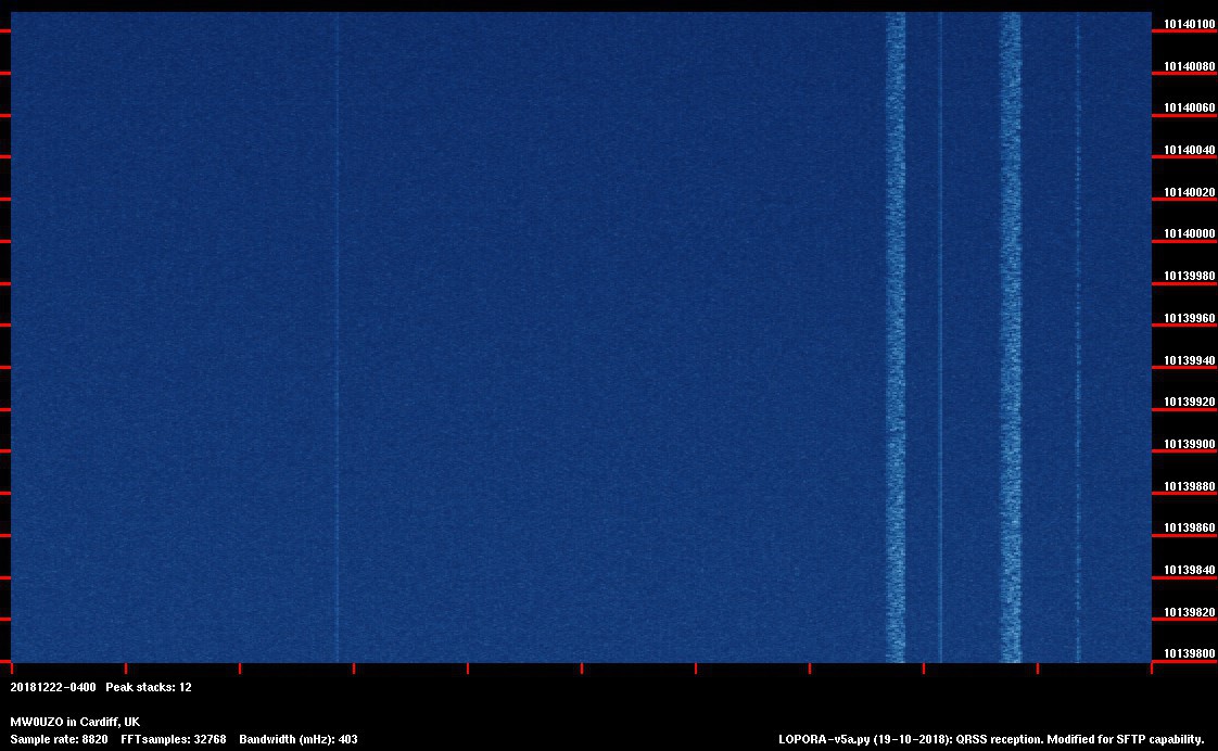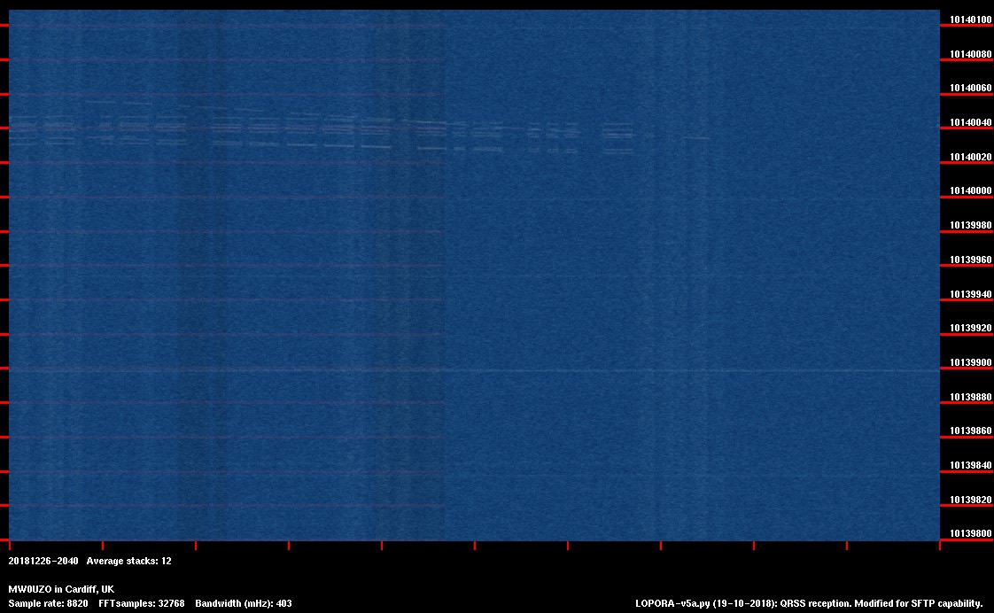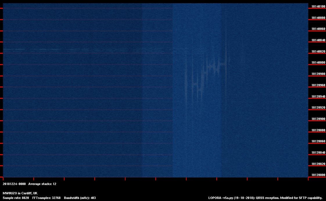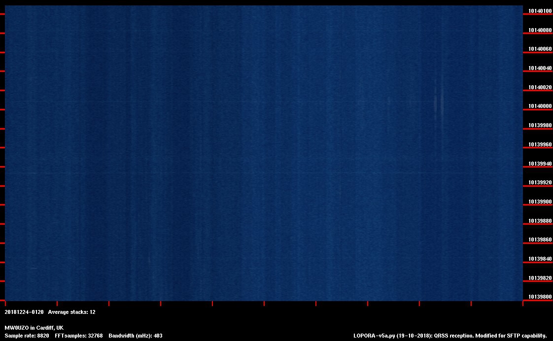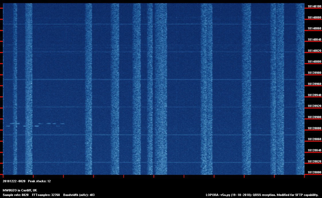 The grabber is made from a simple SDR kit, the Soft66Lite, a Behringer UCA202 USB sound card. The SDR receiver is SDR# and the FFT processing and display software is PA2OHH's excellent analysis program LOPORA. The SDR radio has a crystal frequency of 20.250Mhz with a piece of copper soldered to it, inside a homebrew crystal oven.
