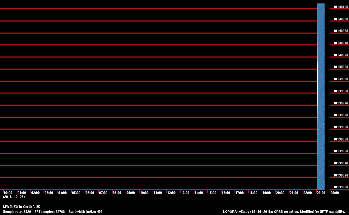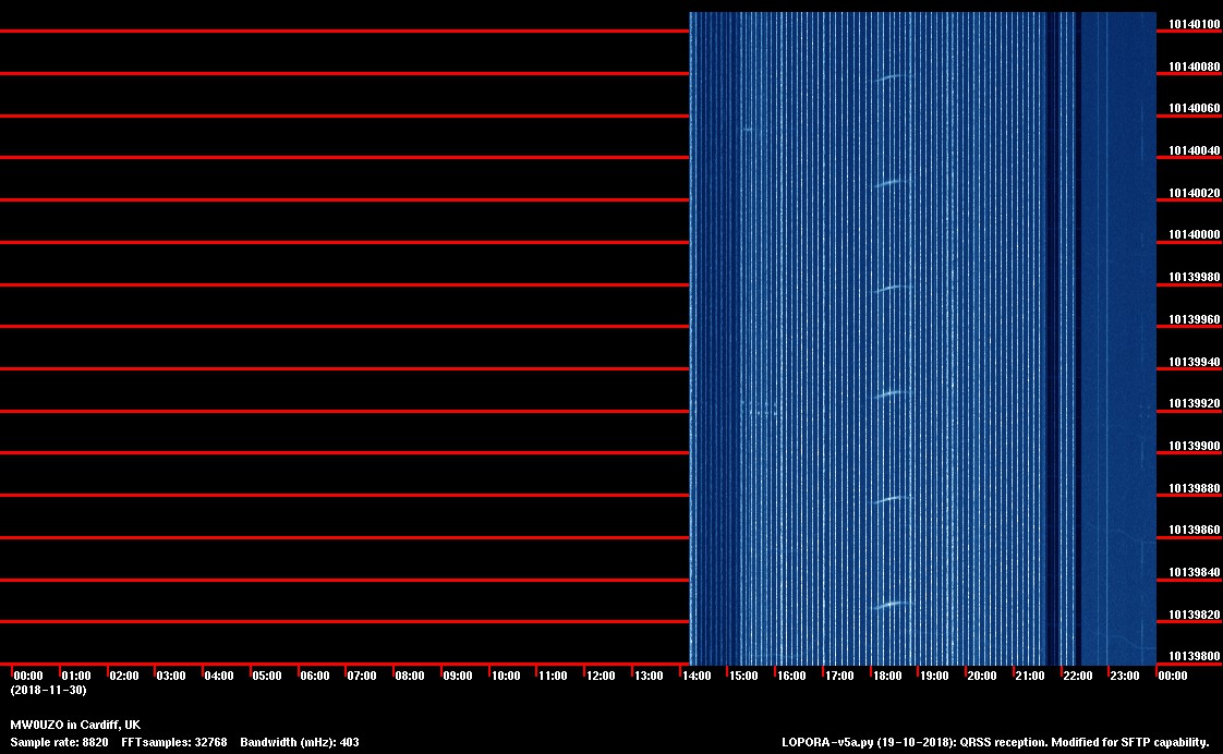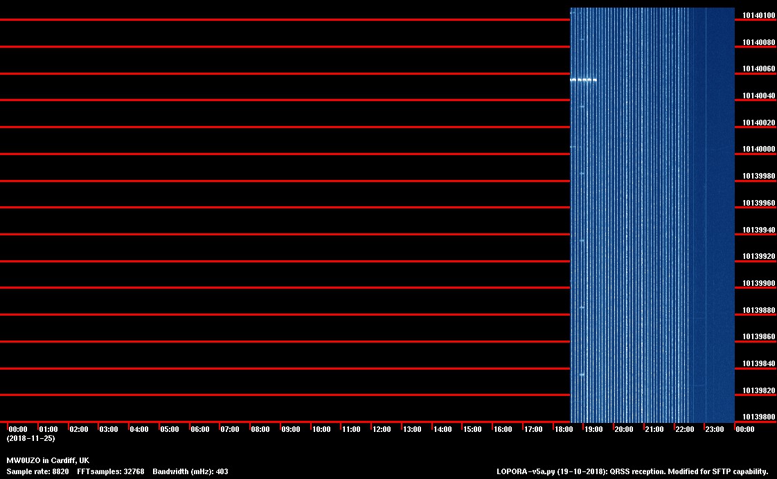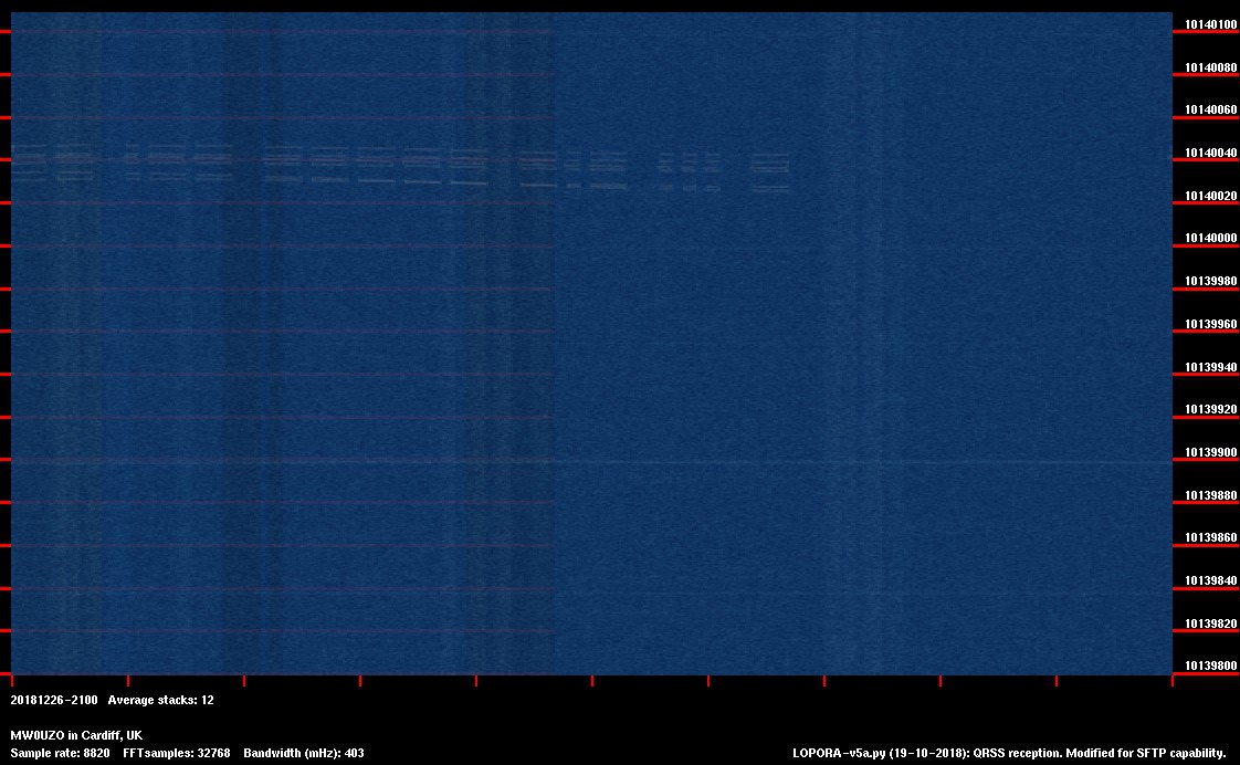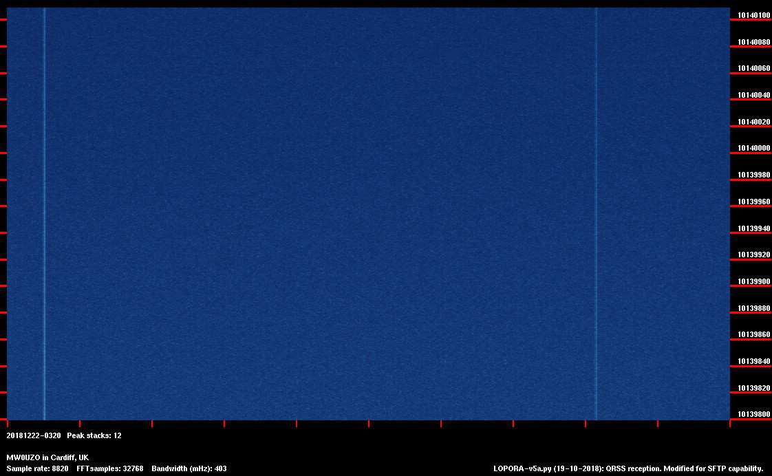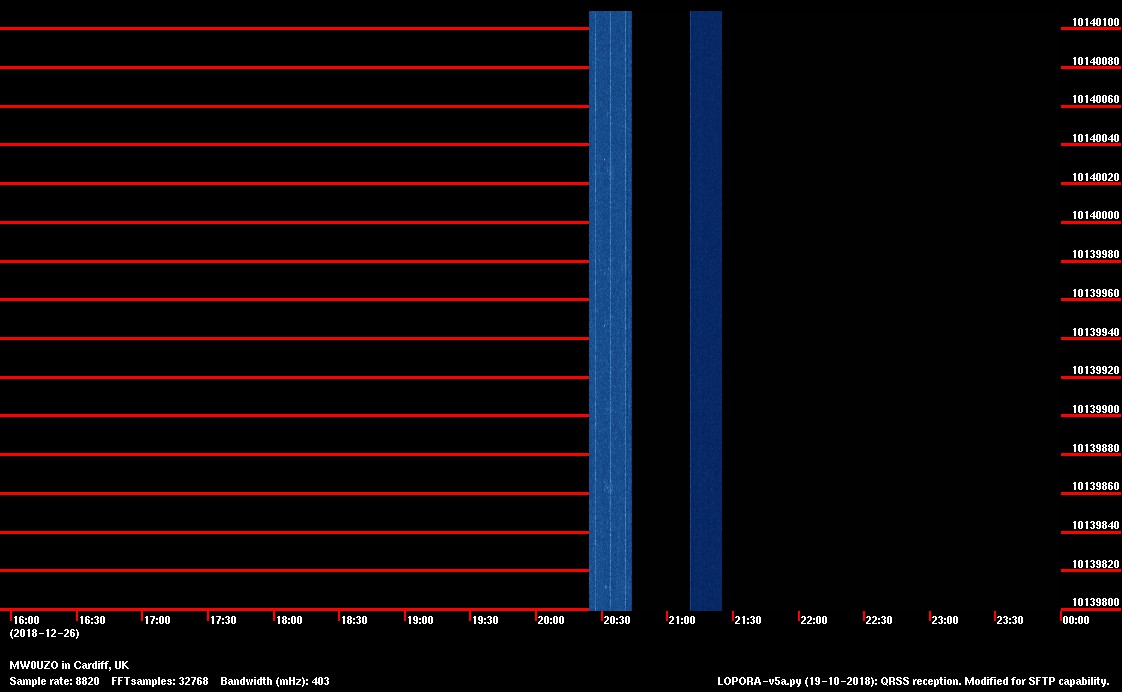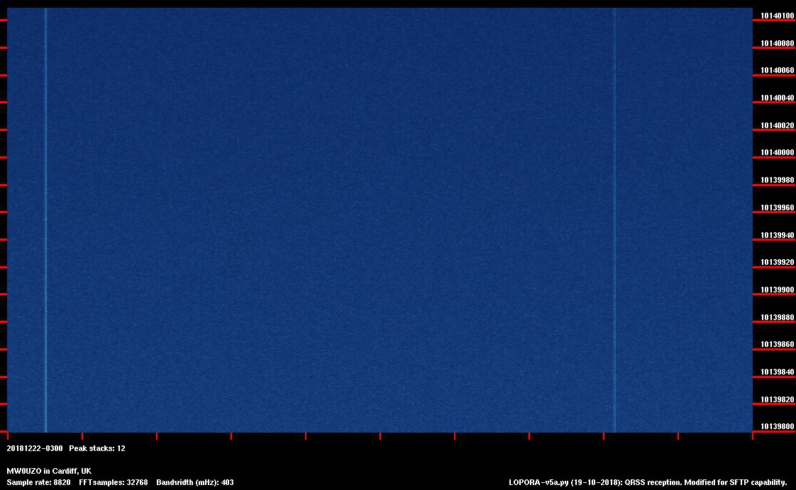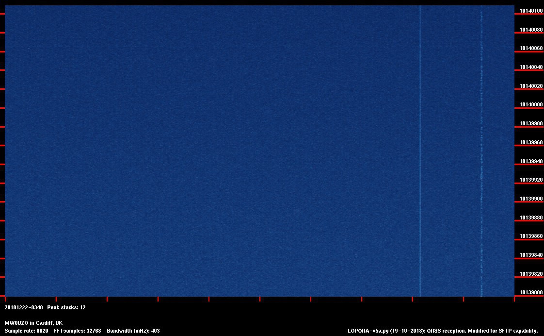 The grabber is made from a simple SDR kit, the Soft66Lite, a Behringer UCA202 USB sound card. The SDR receiver is SDR# and the FFT processing and display software is PA2OHH's excellent analysis program LOPORA. The SDR radio has a crystal frequency of 20.250Mhz with a piece of copper soldered to it, inside a homebrew crystal oven.