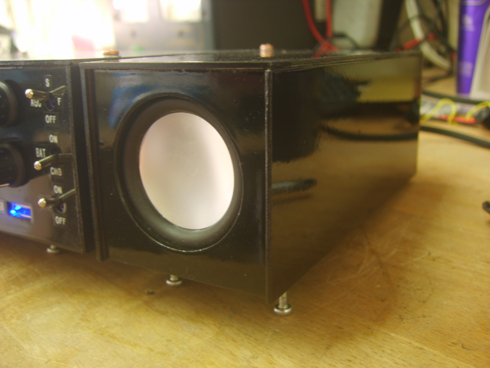 As a nod to the usual lineups of the FT and TS series transceivers with decent size speakers, I made a nice matching external speaker. The speaker was a small, but smart and reasonable power handling 50mm 5W type, with silver cone without the centre coil cover.
