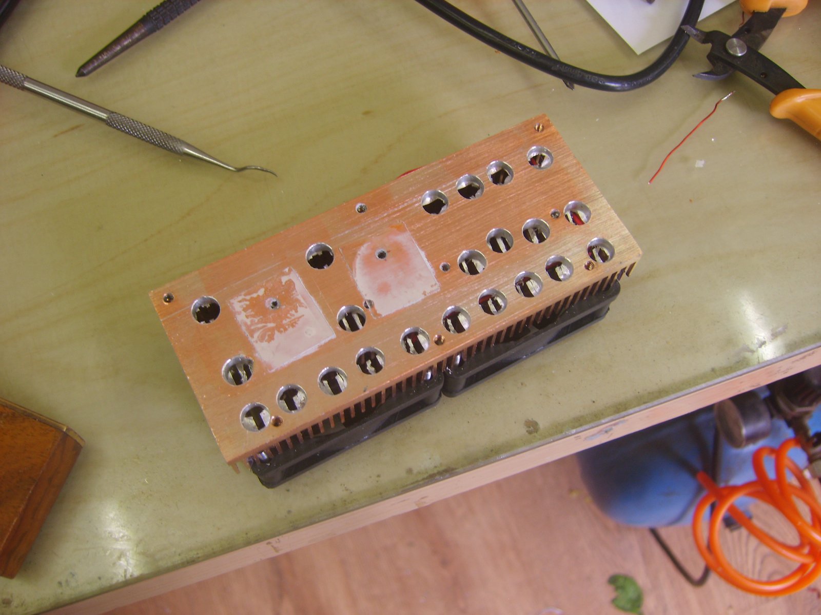Holes in the heatsink allow air to be drawn over each level inside the rig.