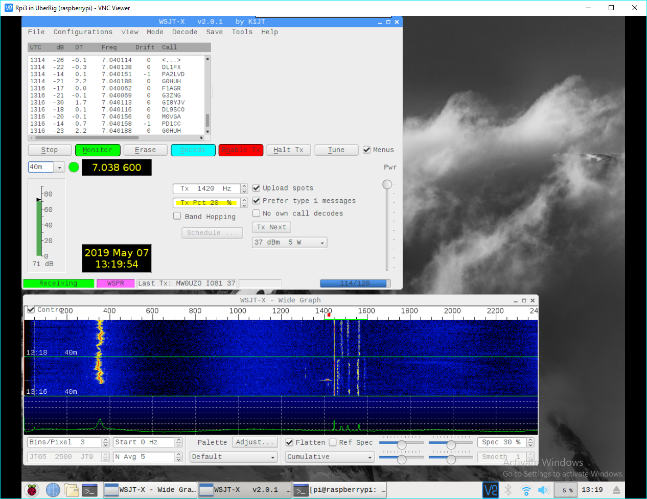 Onboard Pi3 running WSPR.